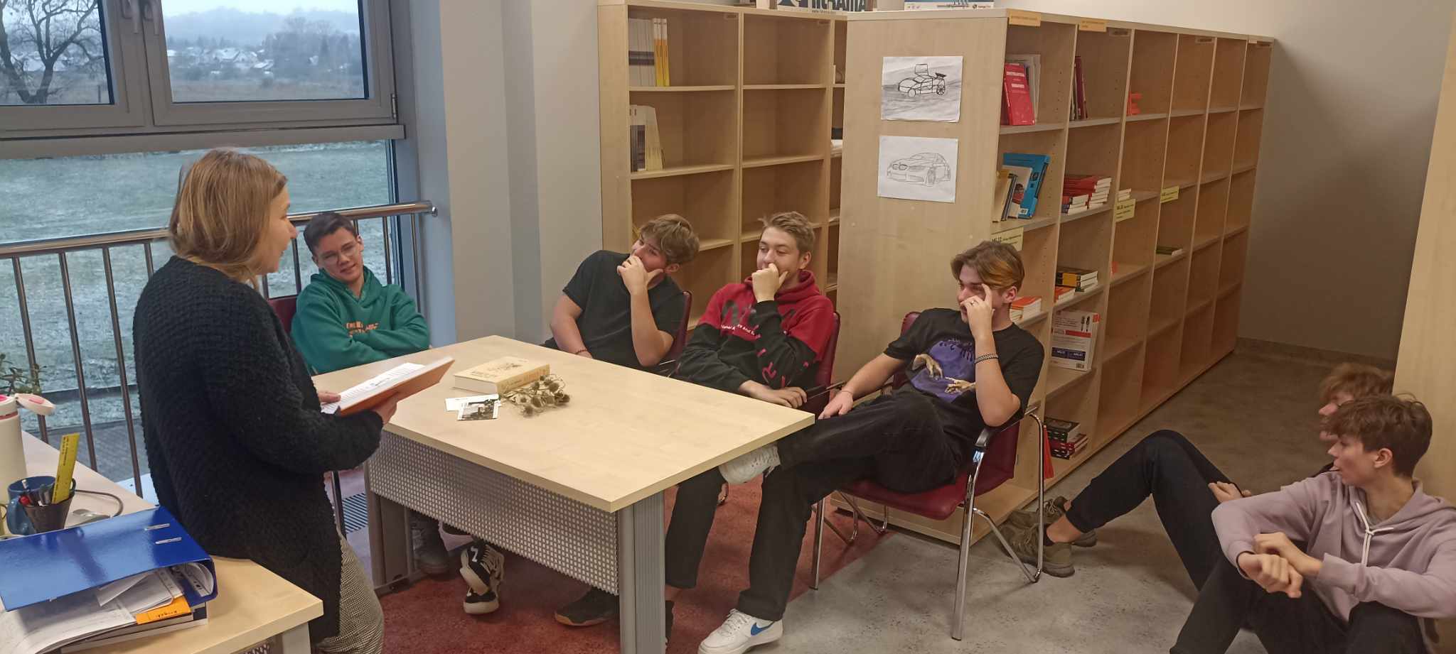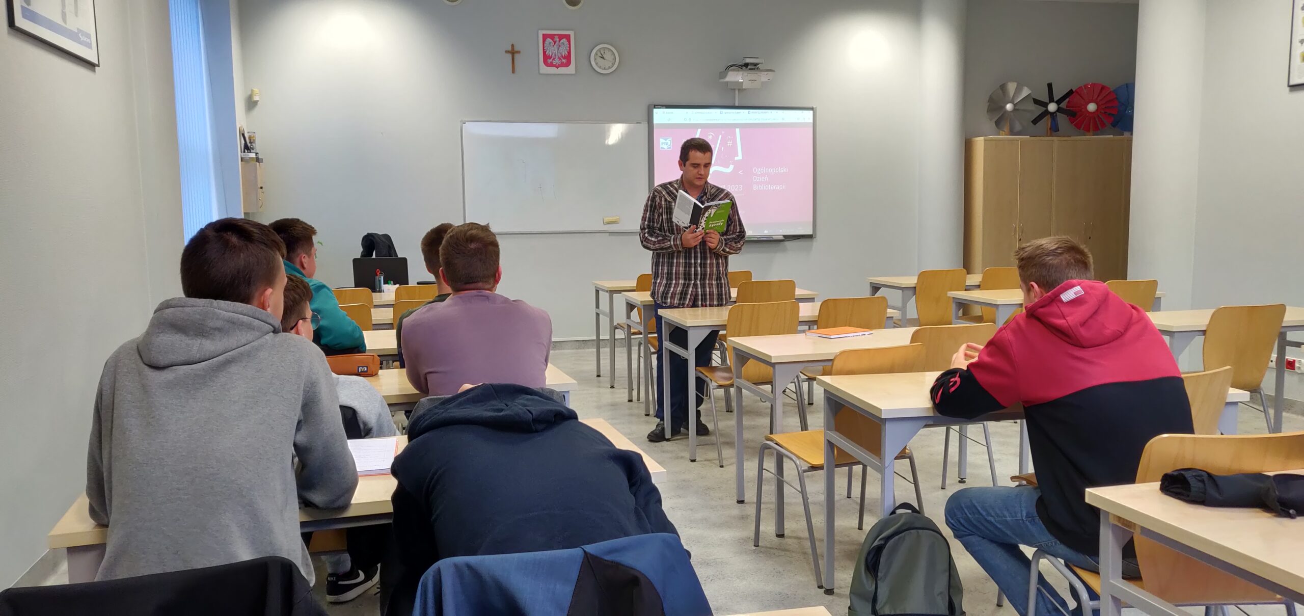 Od 14 do 21 listopada 2023 uczniowie i nauczyciele CKZ dołączyli do obchodów święta biblioterapii pod hasłem Czytanie daje siłę! Badania wskazują, że biblioterapia prowadzi do zmniejszenia stresu związanego z chorobą, hospitalizacją czy niepełnosprawnością, powoduje pozytywną zmianę nastroju, rozwija procesy poznawcze, niweluje poczucie osamotnienia i izolacji społecznej oraz wzmacnia wiarę we własne możliwości. Tę zmianę nastroju zarówno u nauczycieli jak i uczniów można było zauważyć w trakcie zajęć, w których udział wzięli uczniowie klas: 2TM, 1TM, 1TP, 2TP, 3TS i 2M. Na poprawę ich nastroju wpłynęła lektura książki “Przyjaciele żyrafy. Bajki o empatii”, której autorką jest Joanna Berendt. Autorka jest coachem, szkoleniowcem i współautorką wielu publikacji związanych z tematyką Porozumienia bez Przemocy Marshalla Rosenberga, a Aneta Ryfczyńska – pisarką. Stworzyły one projekt bajek promujących komunikację opartą na wzajemnym szacunku, zrozumieniu, współodczuwaniu. Dzięki temu możemy budować piękniejsze, głębsze relacje z ludźmi – także w szkole. I tego wszystkiego życzy Wam biblioteka na zbliżające się święta Bożego Narodzenia.