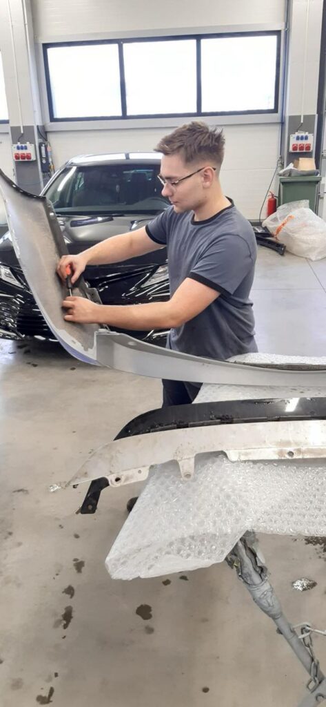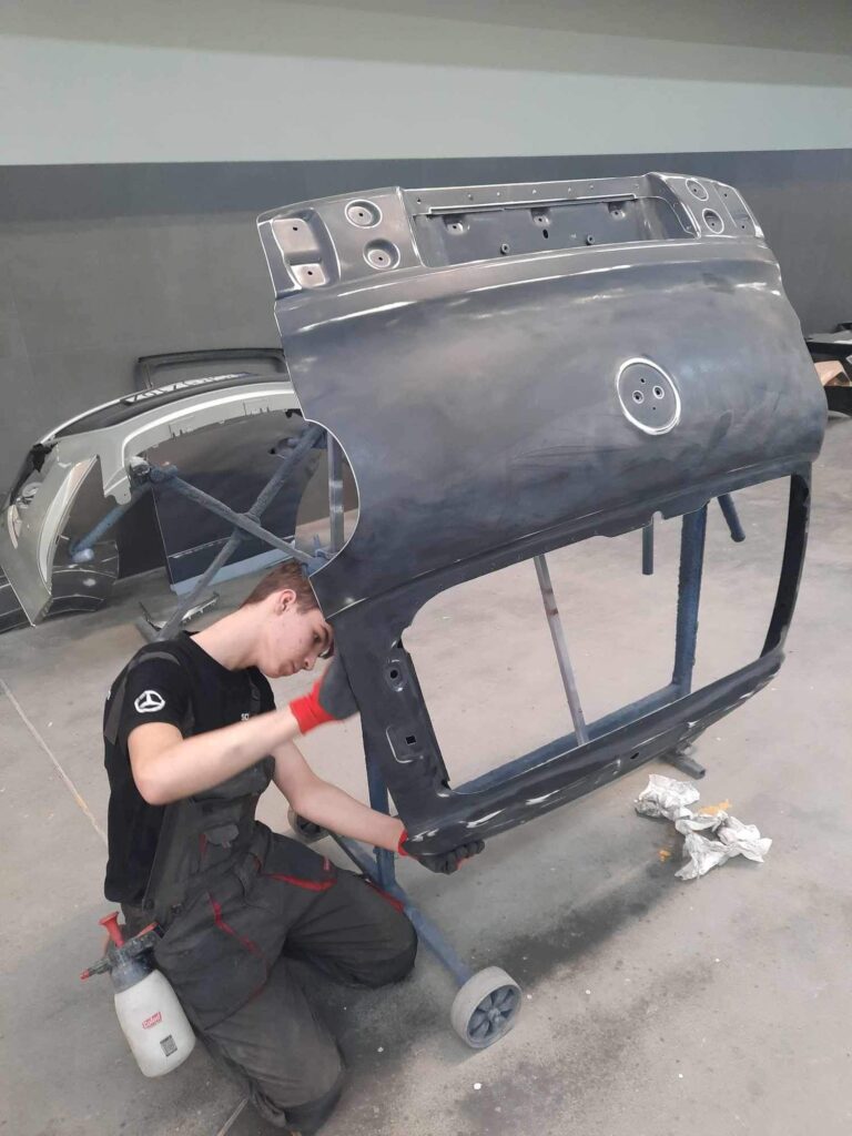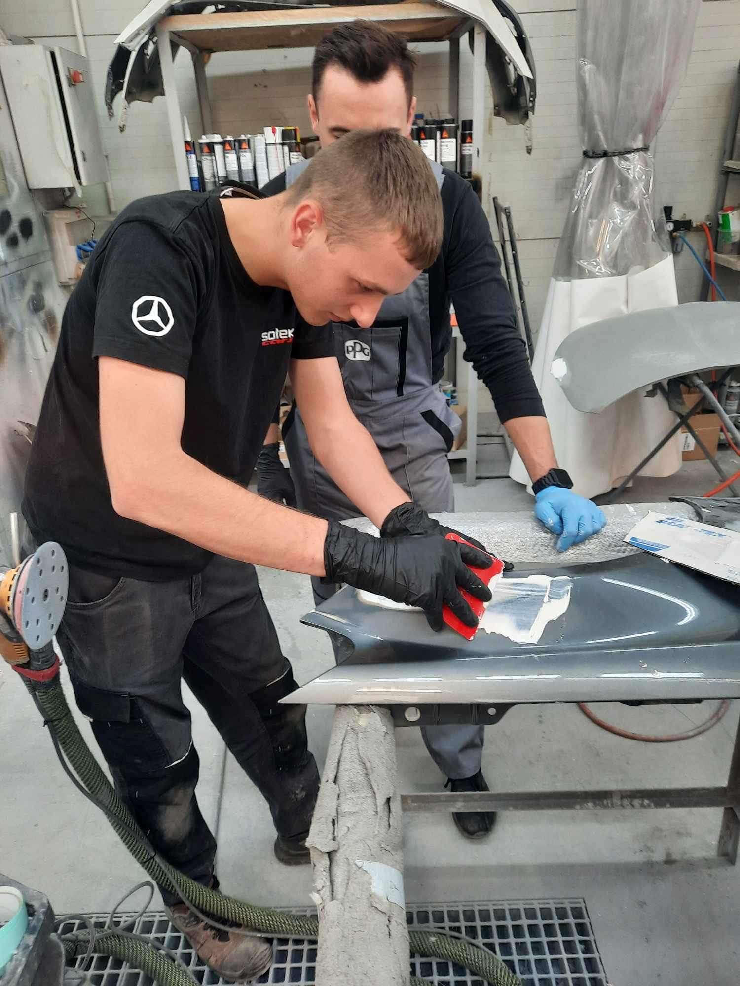 W dniu 12 kwietnia 2024 roku w ramach współpracy CKZ z firmą Sołek Cars zostało zorganizowane szkolenie przeprowadzone przez Pana Huberta, przedstawiciela firmy Aracar. Tematem szkolenia było przygotowanie uszkodzonych elementów karoserii samochodowej pod lakierowanie.
