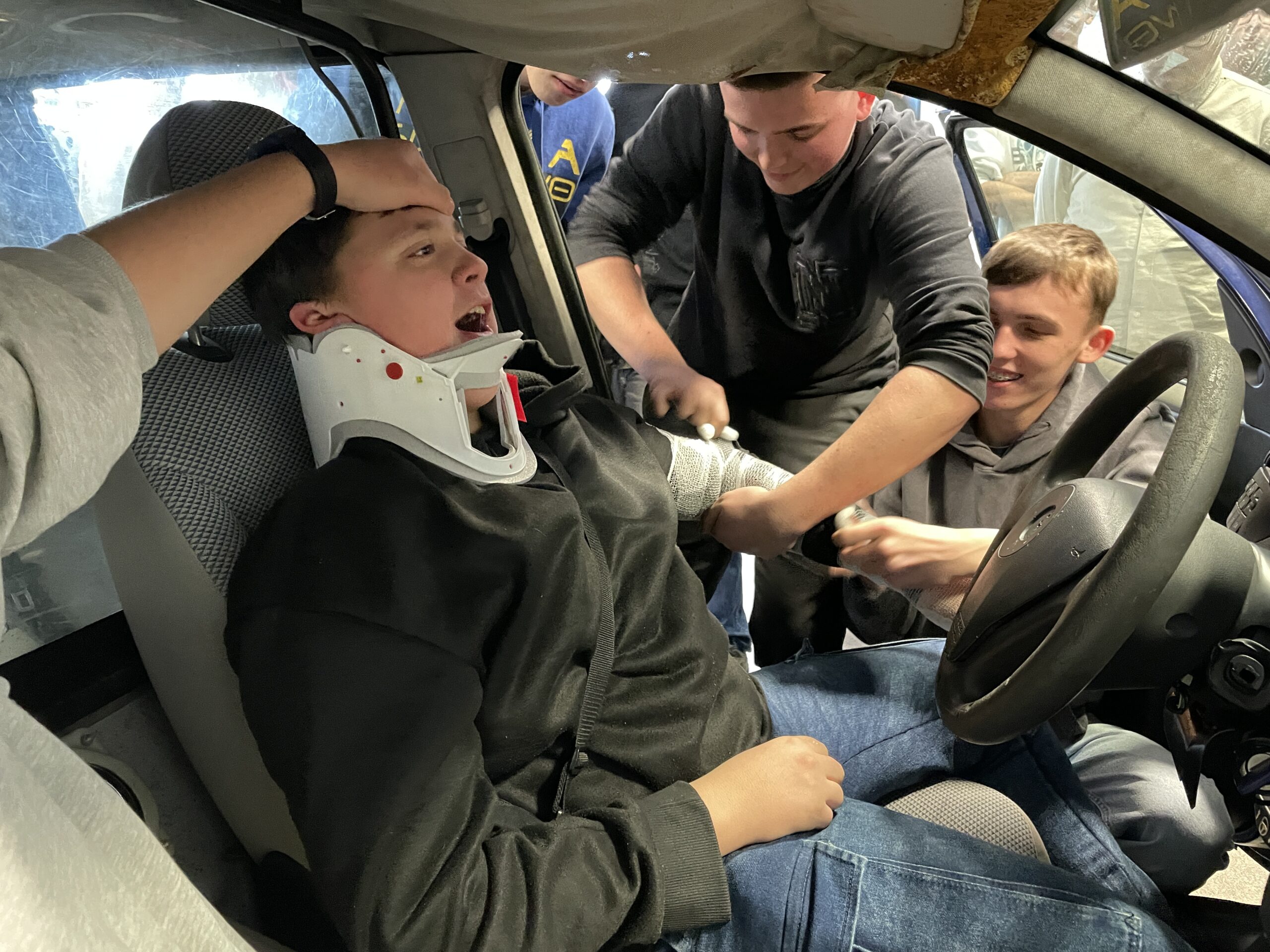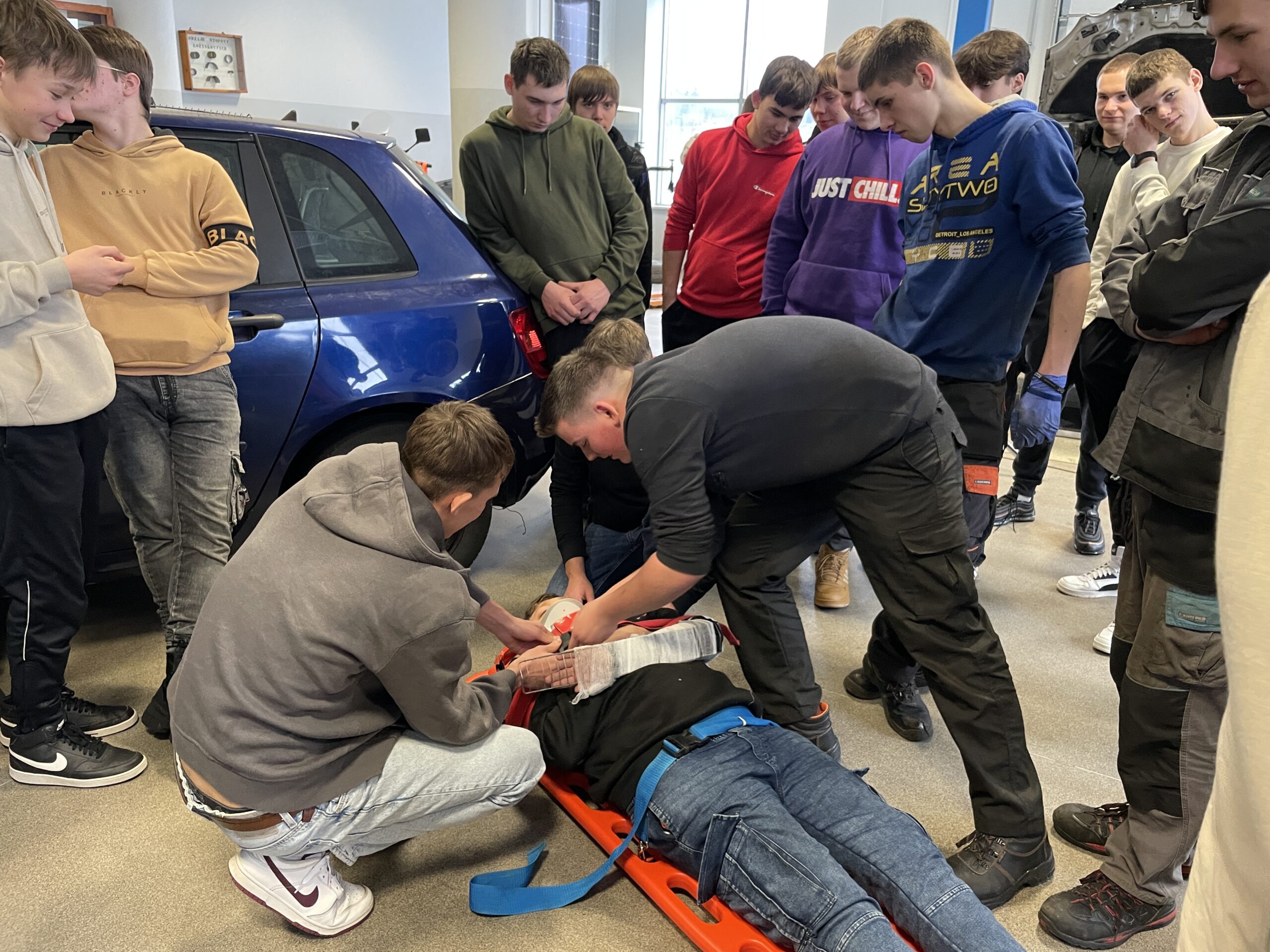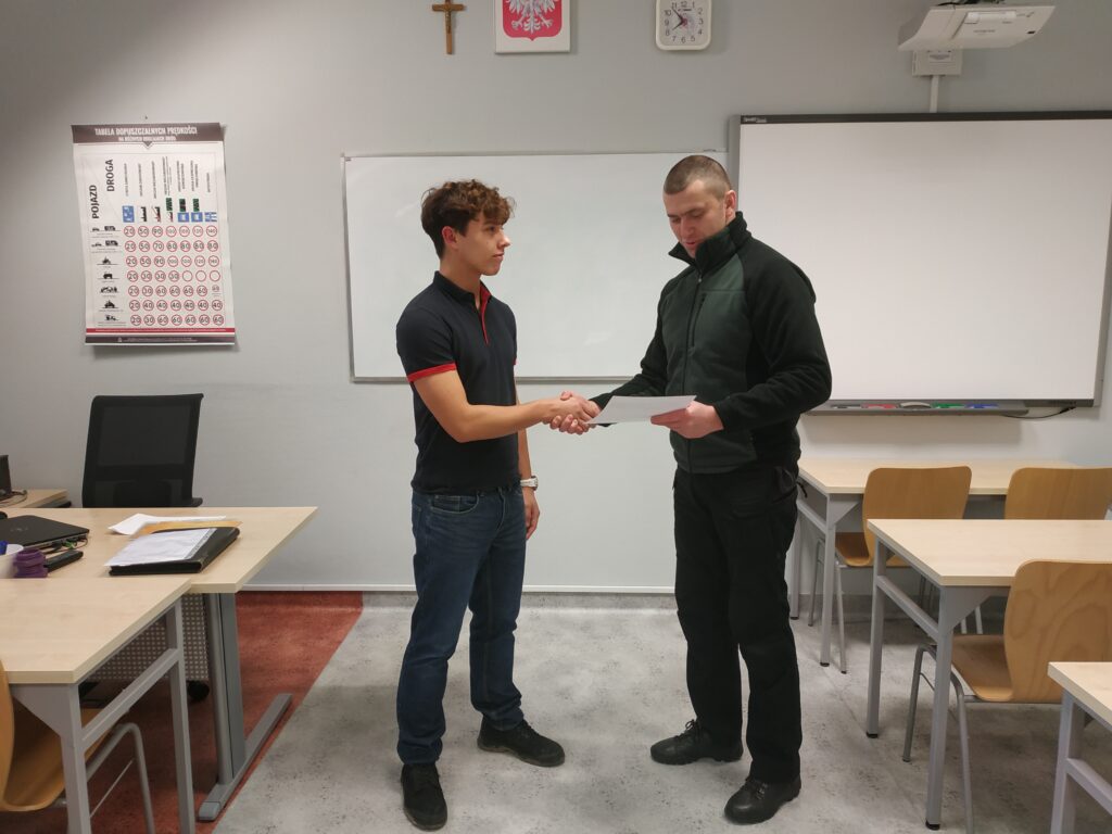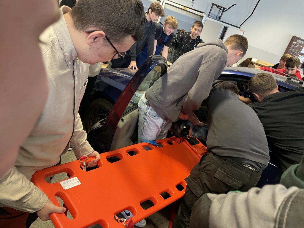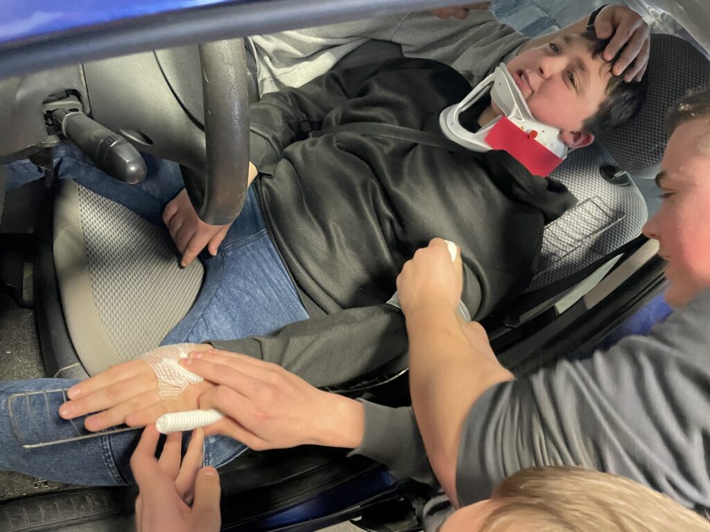 W dniu 18 stycznia 2024 roku uczniowie, którzy przygotowują się do uzyskania prawa jazdy kategorii B, brali udział w pokazie przygotowanym przez ratownika medycznego Pana Dawida Rusyn, który symulował ewakuację z samochodu poszkodowanego w wypadku komunikacyjnym. Bardzo dziękujemy za możliwość uczestniczenia w wydarzeniu, które niewątpliwie mocno zainteresowały słuchaczy.