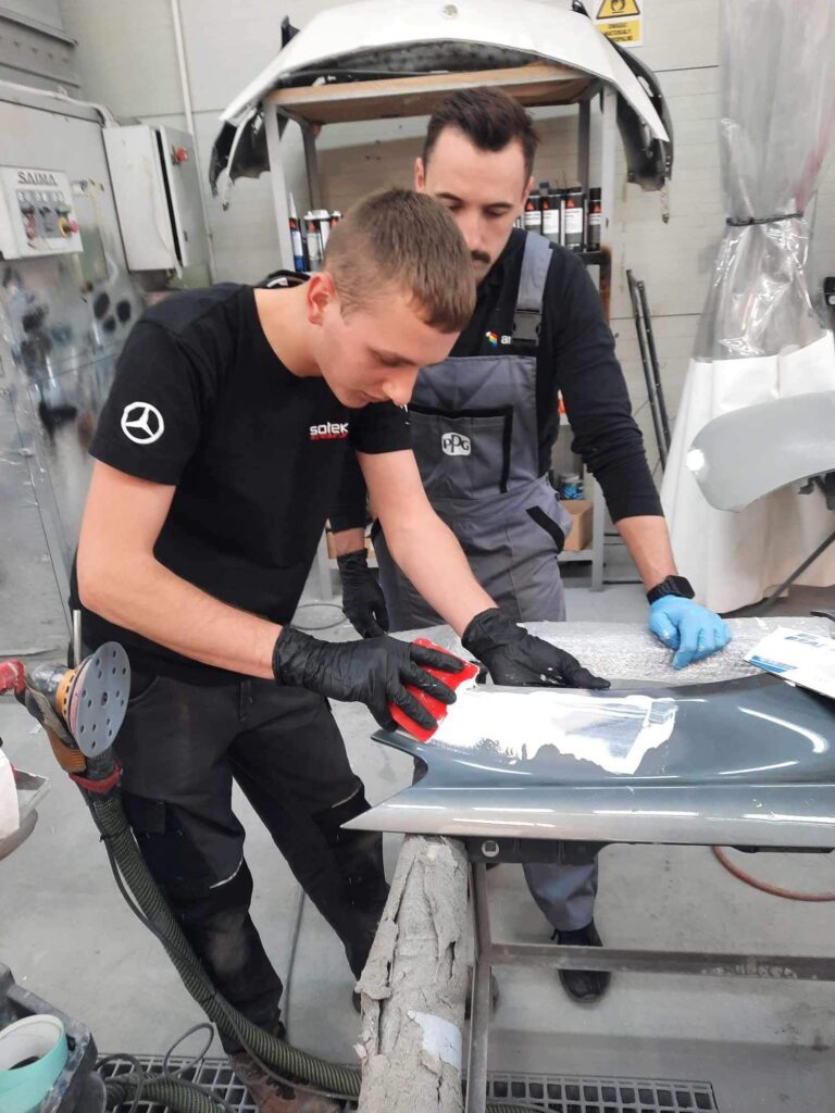 W dniach 11-12 grudnia 2023 roku wybrani uczniowie w zawodzie mechanik pojazdów samochodowych pod opieką nauczyciela Jana Błądzińskiego wzięli udział w 2-dniowym szkoleniu z zakresu napraw lakierniczych w firmie PPG Warszawa (ul. Stanisława Bodycha 47, 05-816 Opacz-Kolonia) zorganizowanym oraz w pełni sfinansowanym przez firmę Sołek Sp. z o.o. (Lutoryż 24B, 36-040 Boguchwała). Wydarzenie miało na celu nagrodzenie wyróżniających się uczniów oraz poszerzenie ich umiejętności zawodowych, a jego organizacja możliwa była dzięki współpracy CKZ z firmą Sołek Sp. z o.o.