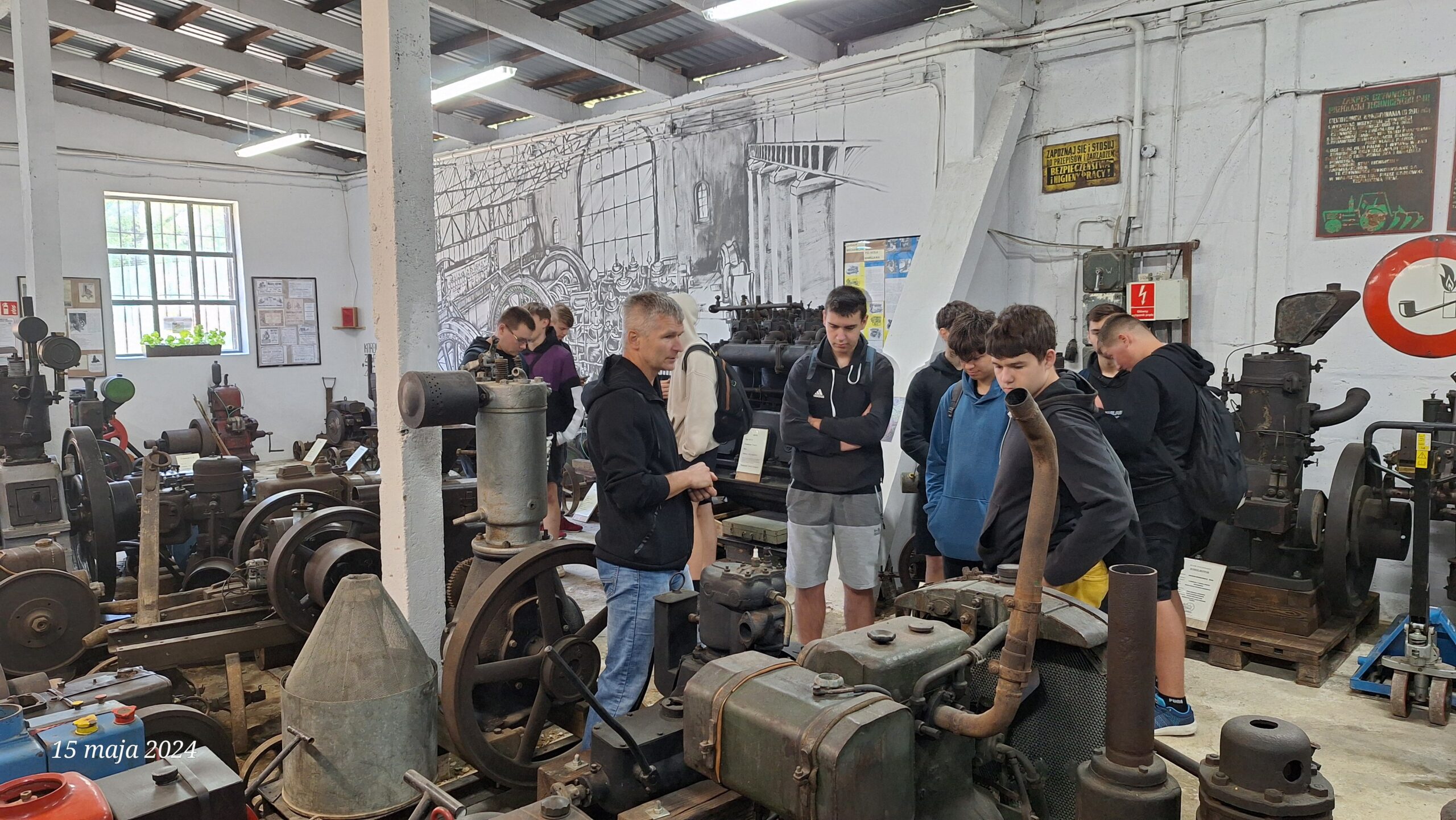 W dniu 15.05.2024 uczniowie klasy 2 Technik pojazdów samochodowych wraz z nauczycielem wybrali się na wycieczkę przedmiotową do naszych okolicznych muzeów. Jako pierwsze zwiedzili Muzeum Samochodów Zabytkowych w Jasienicy Rosielnej działające przy Fundacji Pomocy Dzieciom im. Stanisławy Bieńczak w Brzozowie. W muzeum uczniów przywitał Pan Andrzej Bieńczak przedstawiający się, jako wujek Andrzej. Na samym wstępie podkreślił, że nie chciałby rozmawiać o samochodach, ale o rzeczach ważniejszych. Przede wszystkim zachęcał do realizacji swoich marzeń. Podkreślił, że wszystkie samochody świata są mniej warte niż szczęście. Podkreślił, że najlepszym biznesem świata wcale nie są złoto, diamenty, ropa naftowa itp., ale uszczęśliwianie innych, pomoc innym itp. Pan Andrzej opowiedział również o Fundacji Pomocy Dzieciom, którą prowadzi wraz z żoną w Brzozowie. Następnie oprowadził nas po muzeum gdzie uczniowie mogli zobaczyć mnóstwo zabytkowych pojazdów i udzielił ciekawych informacji na temat każdego z nich. W trakcie zwiedzania każdy z uczestników w ramach nagrody otrzymał od Wujka Andrzeja po groszu na szczęście. https://www.facebook.com/MuzeumSamochodowZabytkowych Następnie uczniowie udali się do Muzeum Silników Stacjonarnych i Techniki Rolniczej w Konieczkowej gdzie czekał na nich Pan Grzegorz Smela kolekcjoner silników. Oprowadził uczniów po muzeum przedstawiając silniki różnych producentów i opowiadając o historii silnika i maszyn rolniczych. W trakcie zwiedzania uczniowie wzięli udział w konkursach gdzie nagrodą był uścisk ręki Prezesa Fundacji Muzeum Silników a zarazem ich nauczyciela Wojciecha Gadamskiego. https://www.facebook.com/muzeumsilnikowstacjonarnych Następnie uczniowie wraz z opiekunem udali się pieszo do oddalonego kilkadziesiąt metrów Muzeum Społecznego Gminy Niebylec gdzie Pan Grzegorz przedstawił zasoby tegoż muzeum i opowiedział historię wielu przedmiotów, które się tam znajdują. https://www.facebook.com/muzeumniebylec Uczniowie wrócili pieszo do Muzeum Silników gdzie obok budynku czekał na nich rozpalony grill. Przy pysznej kiełbasce uczniowie mogli się zintegrować jak również porozmawiać i podsumować wycieczkę. Dziękujemy Panu Andrzejowi i Panu Grzegorzowi za oprowadzenie po Muzeach jak również za bardzo wychowawcze podejście do naszych uczniów. Mamy nadzieję, że uczniowie zapamiętają na bardzo długo wycieczkę i na wzór obu Panów będą realizować swoje marzenia niosąc szczęście sobie i innym.