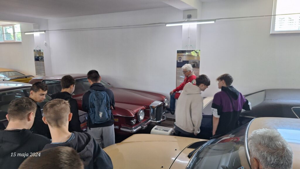 W dniu 15.05.2024 uczniowie klasy 2 Technik pojazdów samochodowych wraz z nauczycielem wybrali się na wycieczkę przedmiotową do naszych okolicznych muzeów. Jako pierwsze zwiedzili Muzeum Samochodów Zabytkowych w Jasienicy Rosielnej działające przy Fundacji Pomocy Dzieciom im. Stanisławy Bieńczak w Brzozowie. W muzeum uczniów przywitał Pan Andrzej Bieńczak przedstawiający się, jako wujek Andrzej. Na samym wstępie podkreślił, że nie chciałby rozmawiać o samochodach, ale o rzeczach ważniejszych. Przede wszystkim zachęcał do realizacji swoich marzeń. Podkreślił, że wszystkie samochody świata są mniej warte niż szczęście. Podkreślił, że najlepszym biznesem świata wcale nie są złoto, diamenty, ropa naftowa itp., ale uszczęśliwianie innych, pomoc innym itp. Pan Andrzej opowiedział również o Fundacji Pomocy Dzieciom, którą prowadzi wraz z żoną w Brzozowie. Następnie oprowadził nas po muzeum gdzie uczniowie mogli zobaczyć mnóstwo zabytkowych pojazdów i udzielił ciekawych informacji na temat każdego z nich. W trakcie zwiedzania każdy z uczestników w ramach nagrody otrzymał od Wujka Andrzeja po groszu na szczęście. https://www.facebook.com/MuzeumSamochodowZabytkowych Następnie uczniowie udali się do Muzeum Silników Stacjonarnych i Techniki Rolniczej w Konieczkowej gdzie czekał na nich Pan Grzegorz Smela kolekcjoner silników. Oprowadził uczniów po muzeum przedstawiając silniki różnych producentów i opowiadając o historii silnika i maszyn rolniczych. W trakcie zwiedzania uczniowie wzięli udział w konkursach gdzie nagrodą był uścisk ręki Prezesa Fundacji Muzeum Silników a zarazem ich nauczyciela Wojciecha Gadamskiego. https://www.facebook.com/muzeumsilnikowstacjonarnych Następnie uczniowie wraz z opiekunem udali się pieszo do oddalonego kilkadziesiąt metrów Muzeum Społecznego Gminy Niebylec gdzie Pan Grzegorz przedstawił zasoby tegoż muzeum i opowiedział historię wielu przedmiotów, które się tam znajdują. https://www.facebook.com/muzeumniebylec Uczniowie wrócili pieszo do Muzeum Silników gdzie obok budynku czekał na nich rozpalony grill. Przy pysznej kiełbasce uczniowie mogli się zintegrować jak również porozmawiać i podsumować wycieczkę. Dziękujemy Panu Andrzejowi i Panu Grzegorzowi za oprowadzenie po Muzeach jak również za bardzo wychowawcze podejście do naszych uczniów. Mamy nadzieję, że uczniowie zapamiętają na bardzo długo wycieczkę i na wzór obu Panów będą realizować swoje marzenia niosąc szczęście sobie i innym.