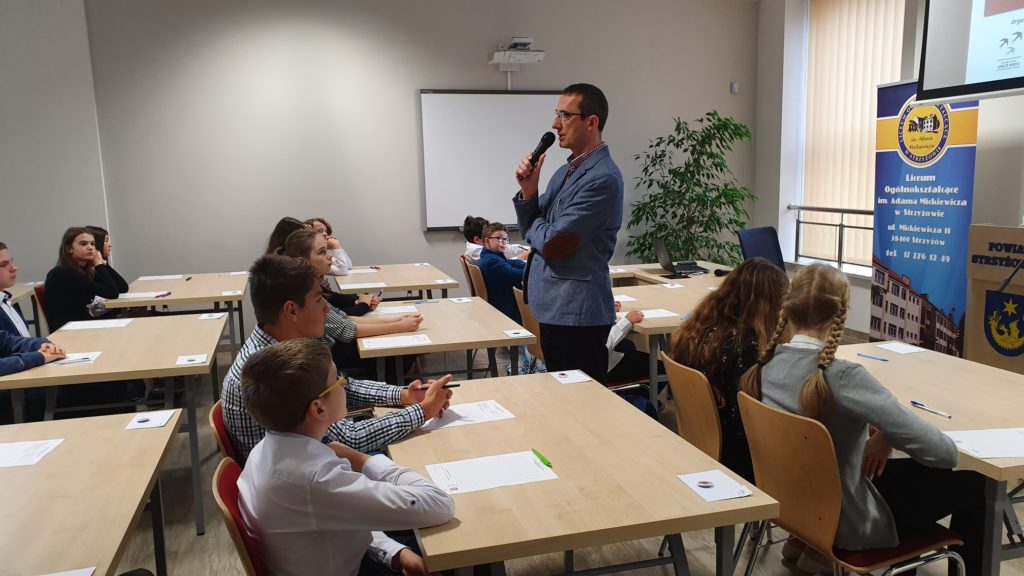 W dniu 28 października w Centrum Kształcenia Zawodowego w Dobrzechowie odbył się wojewódzki etap VII Dyktanda Niepodległościowego „Po polsku o historii”, którego organizatorem jest krakowska fundacja „Zawsze Warto” wraz ze Stowarzyszeniem Polonistów, a wojewódzkim koordynatorem – Liceum Ogólnokształcące im. Adama Mickiewicza w Strzyżowie. Strzyżowskie liceum już po raz drugi jest koordynatorem wojewódzkim tego przedsięwzięcia odbywającego się w siedmiu województwach: podkarpackim, małopolskim, śląskim, dolnośląskim, opolskim, lubelskim i świętokrzyskim.